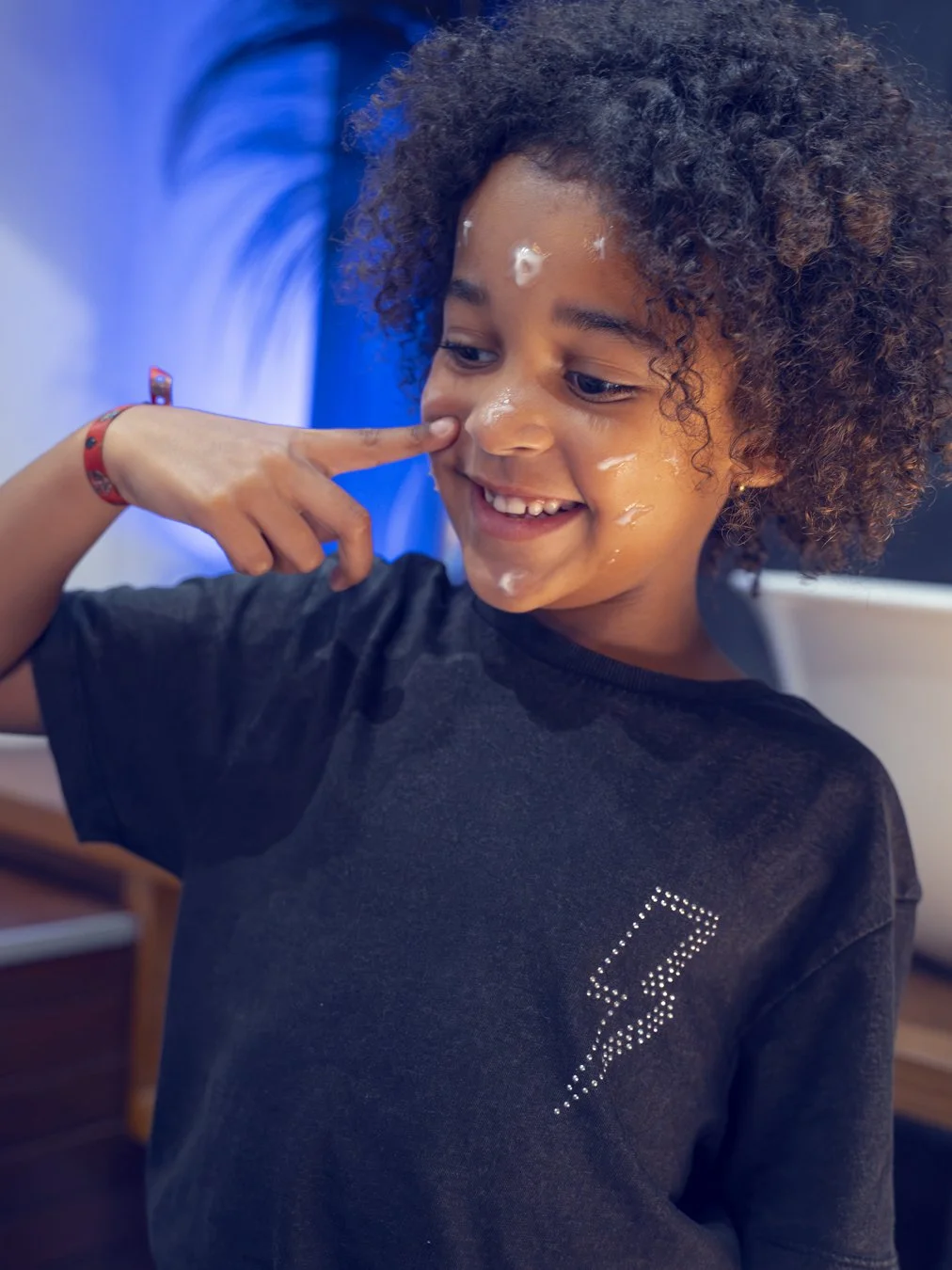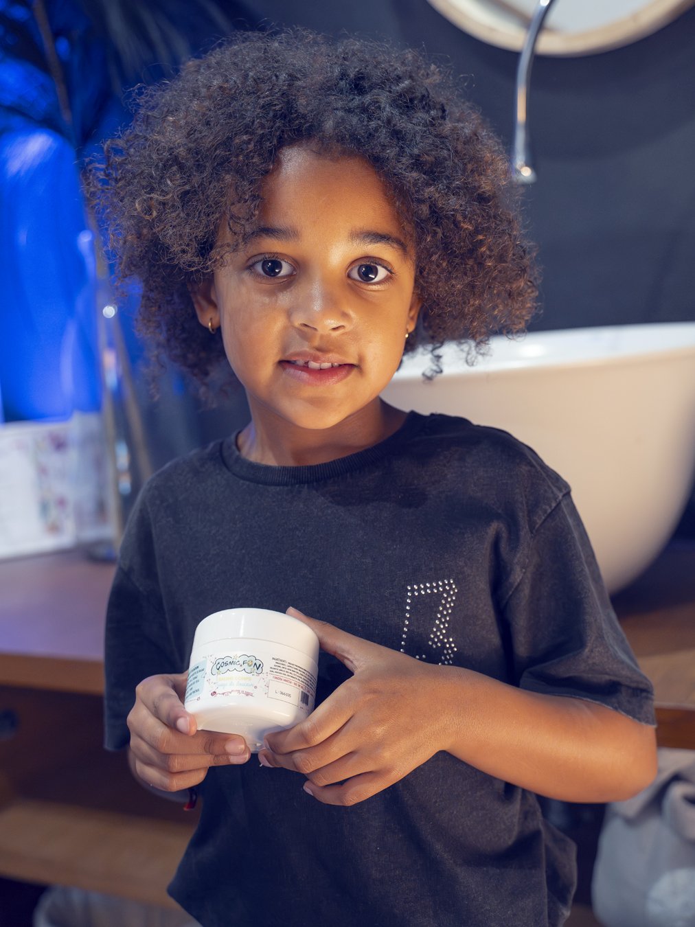 Le baume pour le corps et le visage au beurre de karité est un soin particulièrement bénéfique pour la peau délicate des enfants.